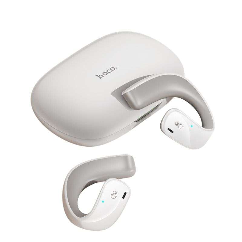 Hoco EQ4 Graceful True Wireless BT Headset without the hassle of wires. Experience the latest Bluetooth 5.3 technology with the JL AC6973D4 chip, ensuring seamless connectivity and exceptional sound quality. Enjoy HiFi Stereo Sound that immerses you in your music, podcasts, and calls with unparalleled clarity. Open air conduction design delivers a unique and safe listening experience, allowing you to stay aware of your surroundings while enjoying your favorite content. With a 500mAh charging case and 110mAh headset battery capacity, you get a total of 12 hours of usage on a single charge, and a standby time of up to 300 hours.