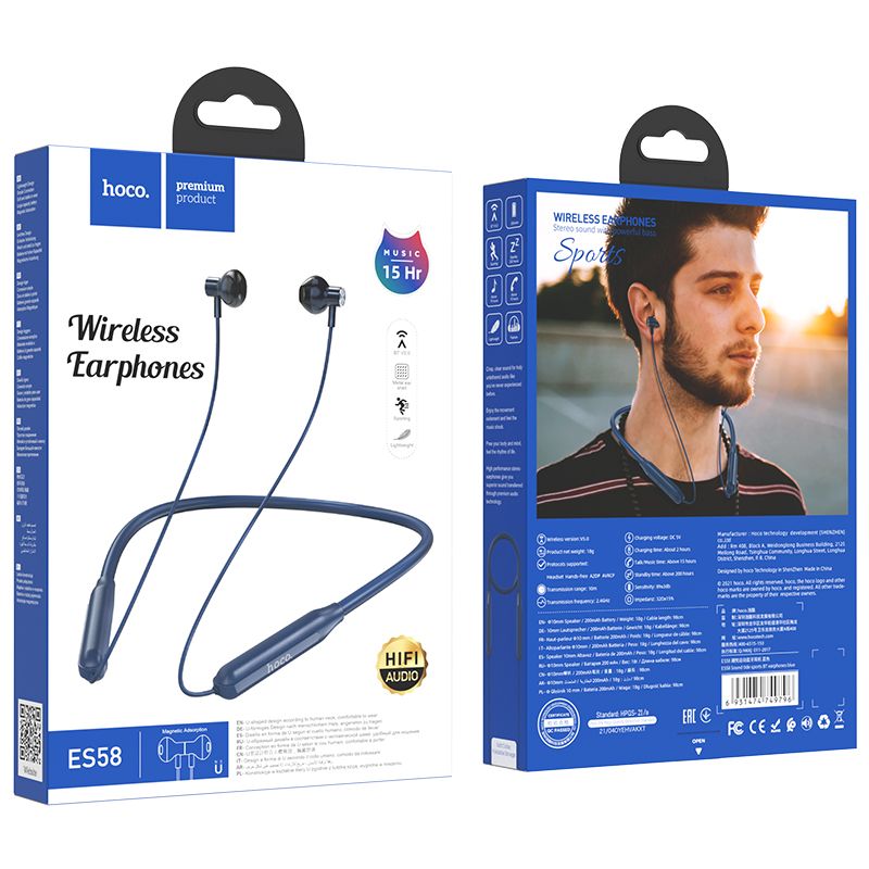 Hoco ES58 Neckband Wireless Headphones, a perfect blend of style, comfort, and cutting-edge technology. Crafted with precision from durable ABS material, these headphones are designed to enhance your audio experience while providing lasting comfort. With a sleek neckband design, these headphones offer a secure fit and easy portability. The 98cm cable length ensures flexibility and convenience, allowing you to move freely without the hassle of tangled wires.