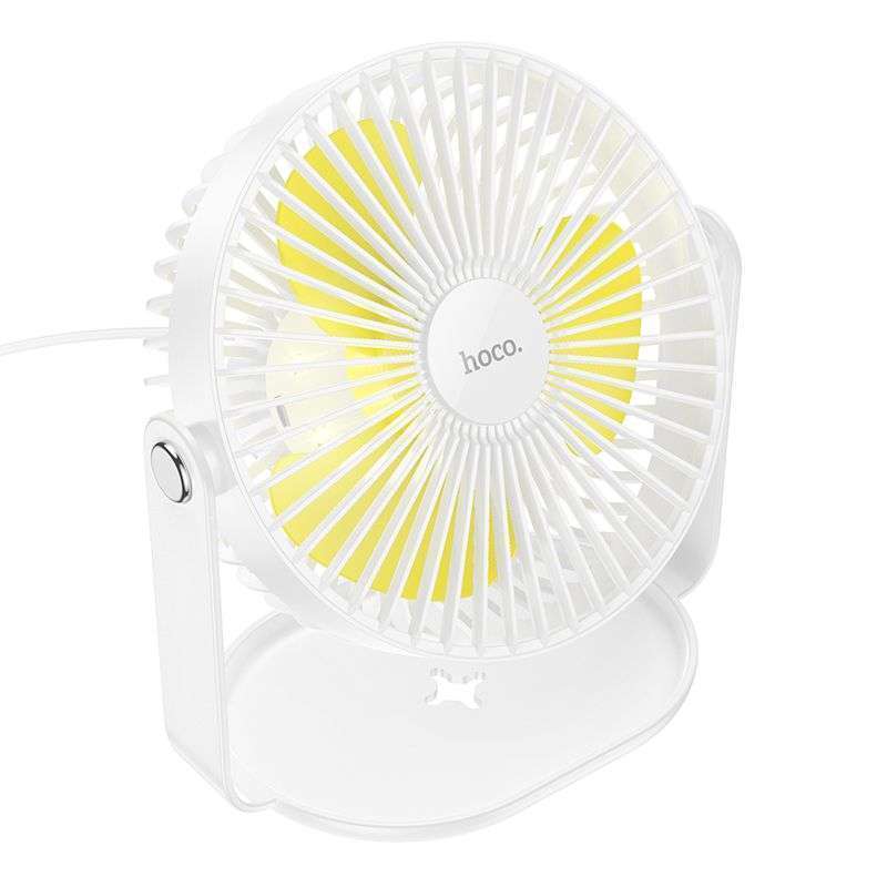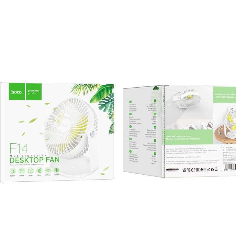 With four adjustable fan speeds, you can easily tailor the airflow to your comfort level. Whether you need a gentle breeze or a powerful gust of air, this desktop fan has you covered. Choose the setting that suits your needs and enjoy a personalized cooling experience. The Hoco F14 offers 360-degree rotation, ensuring that the cool air reaches every corner of your space. This feature makes it ideal for use in shared workspaces, bedrooms, or living rooms. Say goodbye to hotspots and enjoy consistent cooling throughout the room. Not only does the Hoco F14 keep you cool, but it also enhances your surroundings with its built-in night light function. Whether you’re using it as a bedside companion or a decorative piece in your living room, the gentle, ambient lighting creates a cozy atmosphere.
