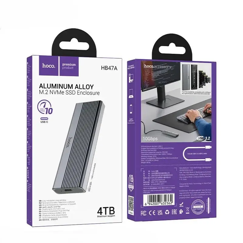 Choosing the Hoco HB47A M.2 SSD Enclosure means opting for performance, durability, and versatility. Whether you need a laptop SSD enclosure or an internal SSD for backups, this model offers high-quality performance at a competitive price. The 10 Gbps USB 3.2 connectivity allows for faster data exchange, especially for high-resolution files and large datasets, making it perfect for work and leisure alike.