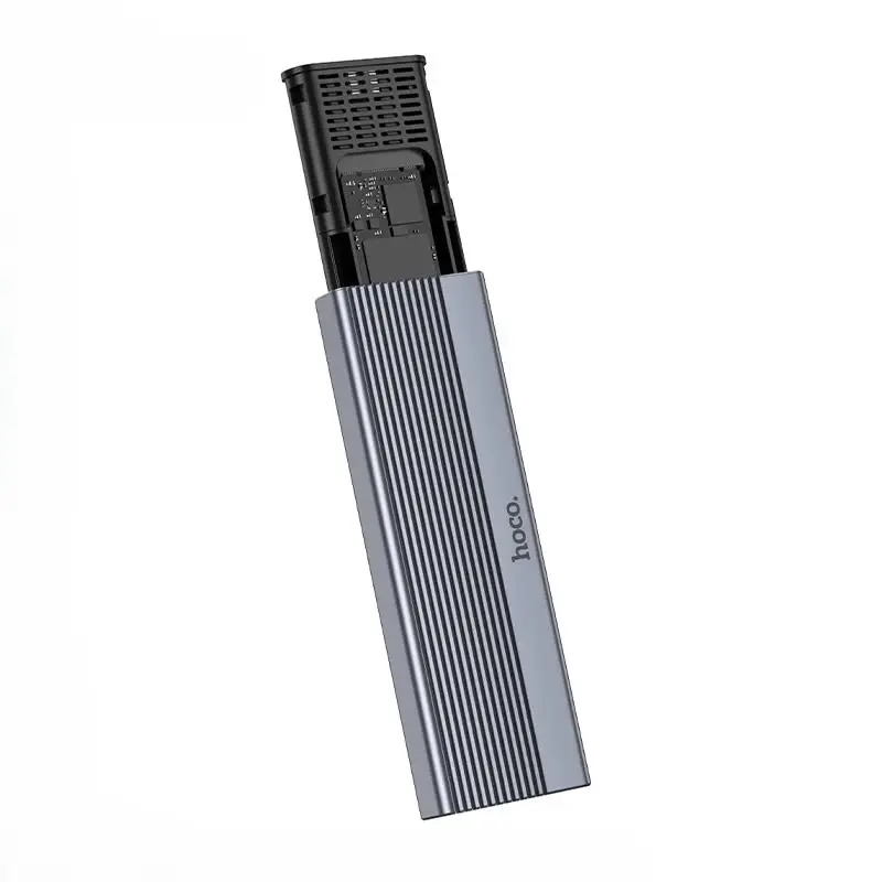 The Hoco HB47A SSD Enclosure stands out with its USB 3.2 support and 10 Gbps data transfer speed, delivering much faster performance than typical enclosures. Crafted in metal gray, it combines durability with effective heat dissipation, ensuring long-term reliability for your internal SSD or laptop SSD. Here’s a closer look at the specifications: