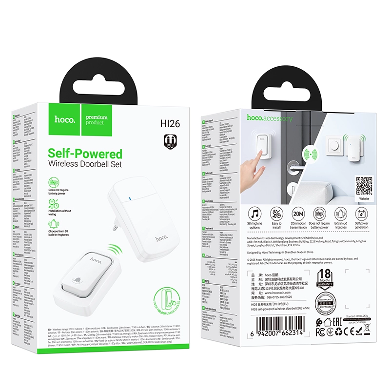 Hoco is a trusted brand for innovative home technology. The HI26 Wireless Doorbell combines long-range functionality, self-powered convenience, and multiple chime options, making it perfect for homes, apartments, and offices.