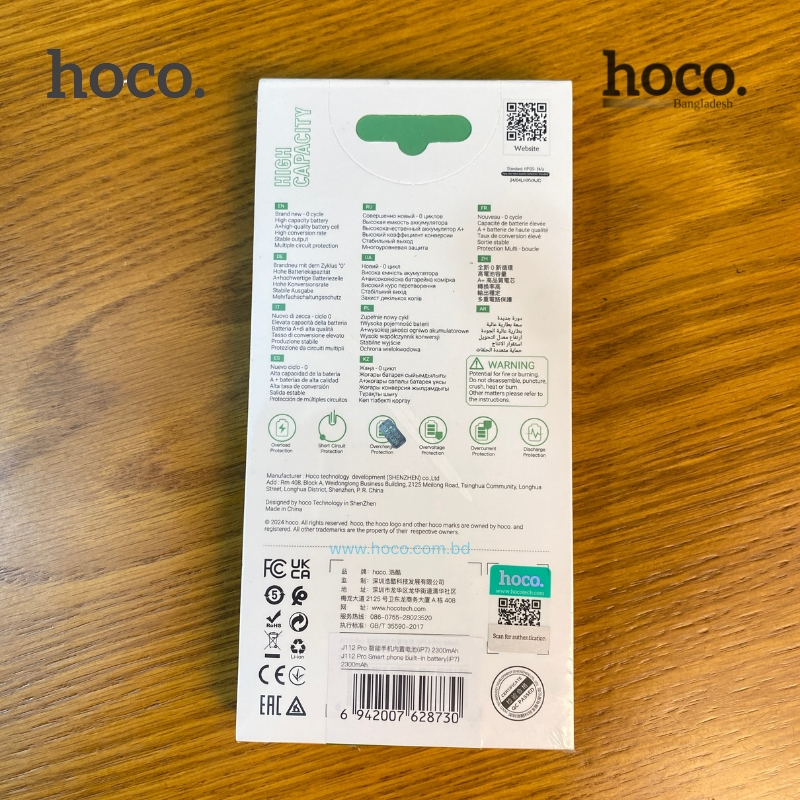 Key Features of Hoco J112 Pro iPhone 7 High Capacity Battery