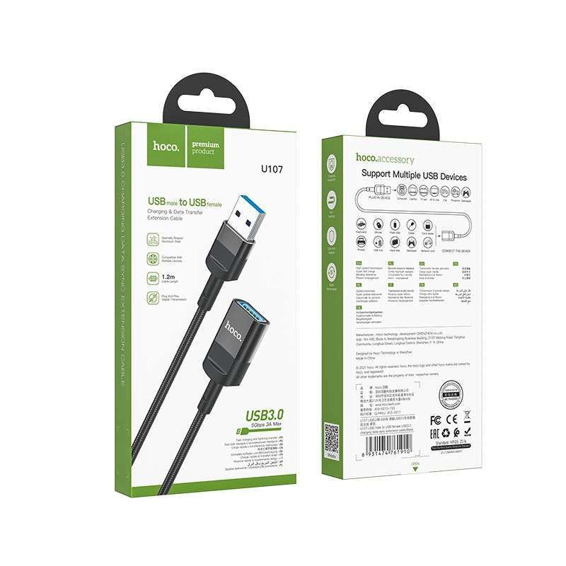 Hoco U107 Extension Cable is here to make your life more convenient. This high-quality, 1.2-meter cable is designed to meet all your data transfer and charging needs with ease. Constructed with precision, the Hoco U107 Extension Cable boasts an aluminum alloy and braided wire build.