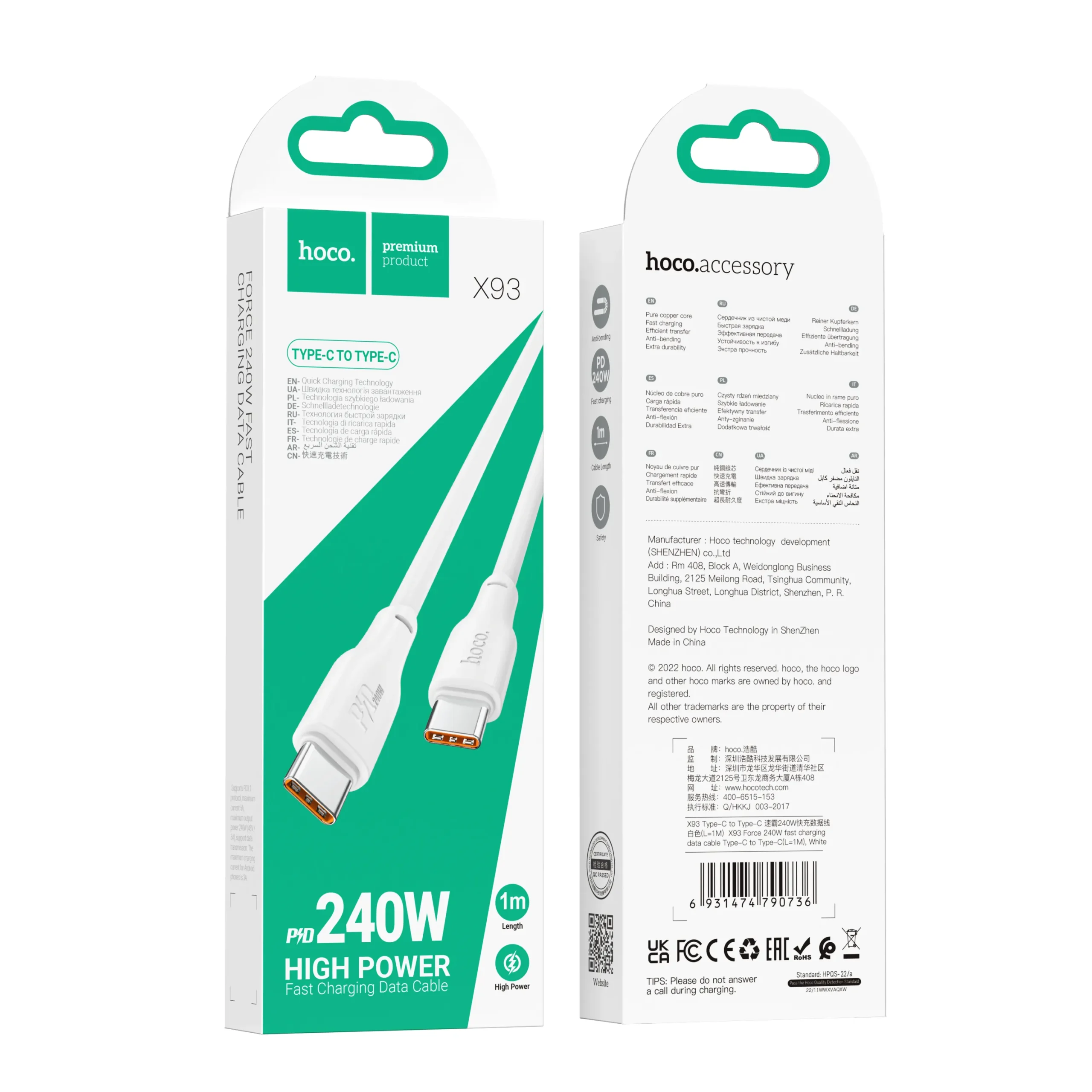 - Versatility: The Type-C to Type-C design makes the Hoco X93 Force compatible with a wide range of devices, including laptops, smartphones, tablets, and more. This versatility makes it a great addition to your tech accessories.
