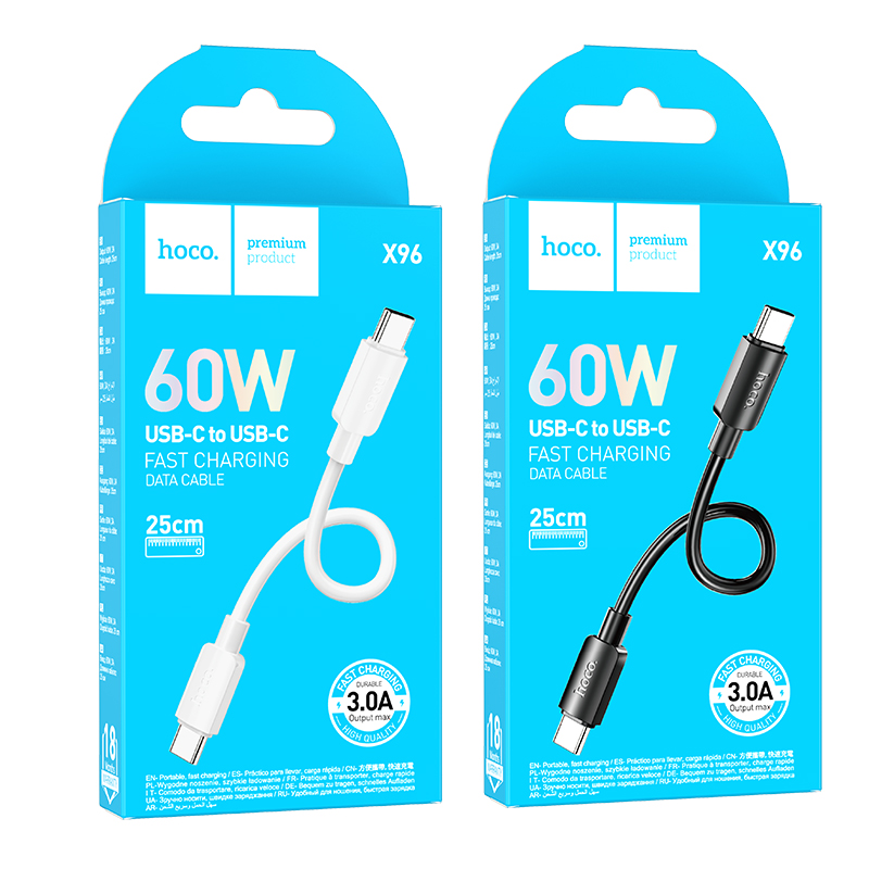 - Length: The Hoco X96 Hyper 60W Fast Charging Cable Type-C to Type-C cable is only 0.25 meters long, making it incredibly portable and convenient for travel or everyday use.