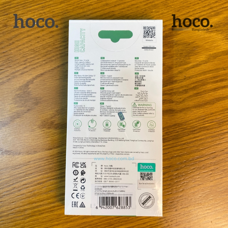 The Hoco J112 Pro iPhone 12 Pro battery gives you a massive 3320mAh capacity.